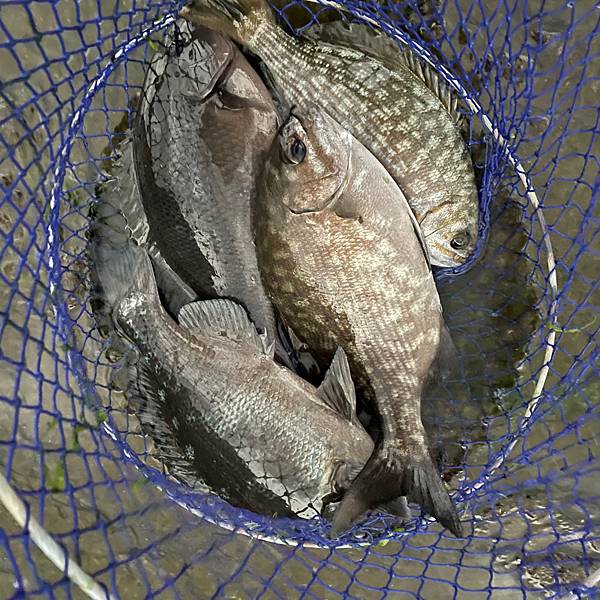 一早滿潮感覺可以先來用腳白菜來玩一下白毛,想不到中午以前只來咬一下⋯⋯但是非常過癮,因為將釣組叨在溝內白泡間,雖然時而被吸入流吸入,等浪一推浮標露出標尾的瞬間,突然射入水中,還沒等揚竿就大拉竿了,真的超舒服的🥹⋯⋯下午朋友提議換點釣黑毛,我只好誘餌袋裝水打氣吧早上釣的唯一一隻白毛養活的帶過去,